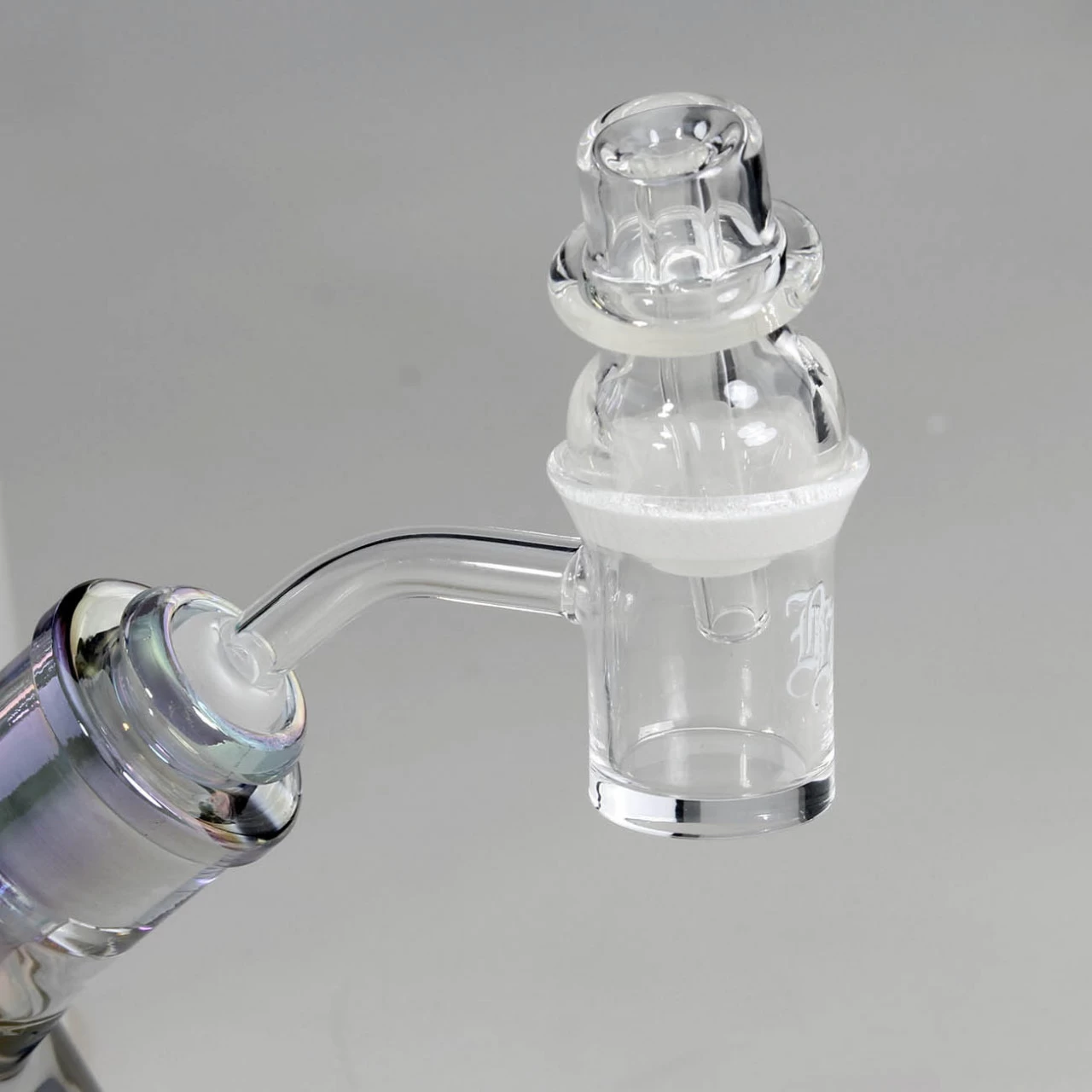 Instead of the carb cap, we can also recommend the use of dab pearls (sold separately) with this banger. They can rotate very well in this banger and thus further heat up the vapourization. This way, you get the most flavourful and richest vapour even from small dabs.
