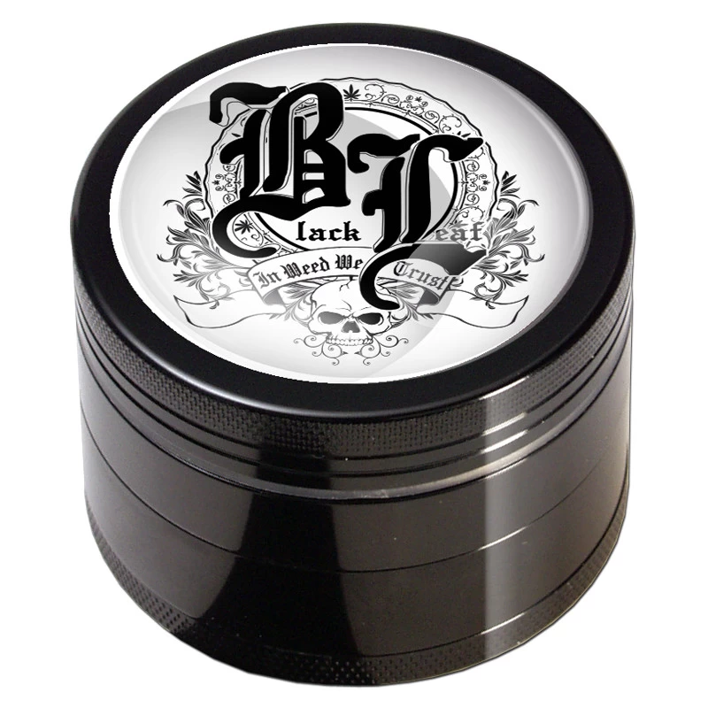 Black Leaf Grinder 4part Black LeafMetal grinder with self holding magnet, nylon ring and diamond shaped teeth.
