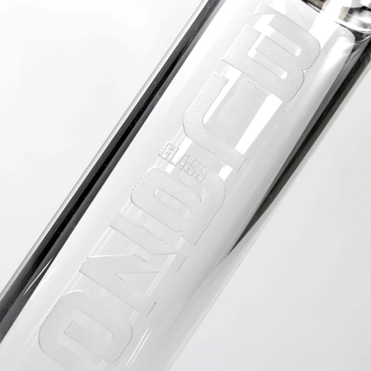 The kickhole can be closed with the enclosed plug to make cleaning the glass bong more easier. The sandblasted logo of Blaze Glass is discrete and located on the draft tube. The wall thickness of 5mm gives the water pipe the necessary robustness.