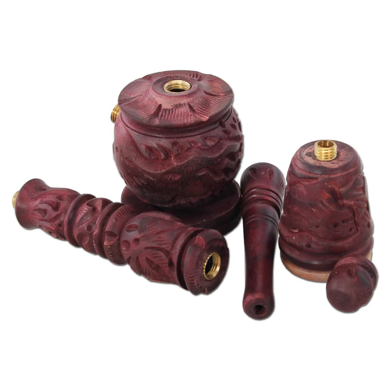 And the highlight: There are numerous possible combinations to assemble the pipe. Either you screw the wooden parts together as a normal hand pipe or as a chillum or as a shotgun pipe or with or without kick hole and so on. or. Just as you like it!