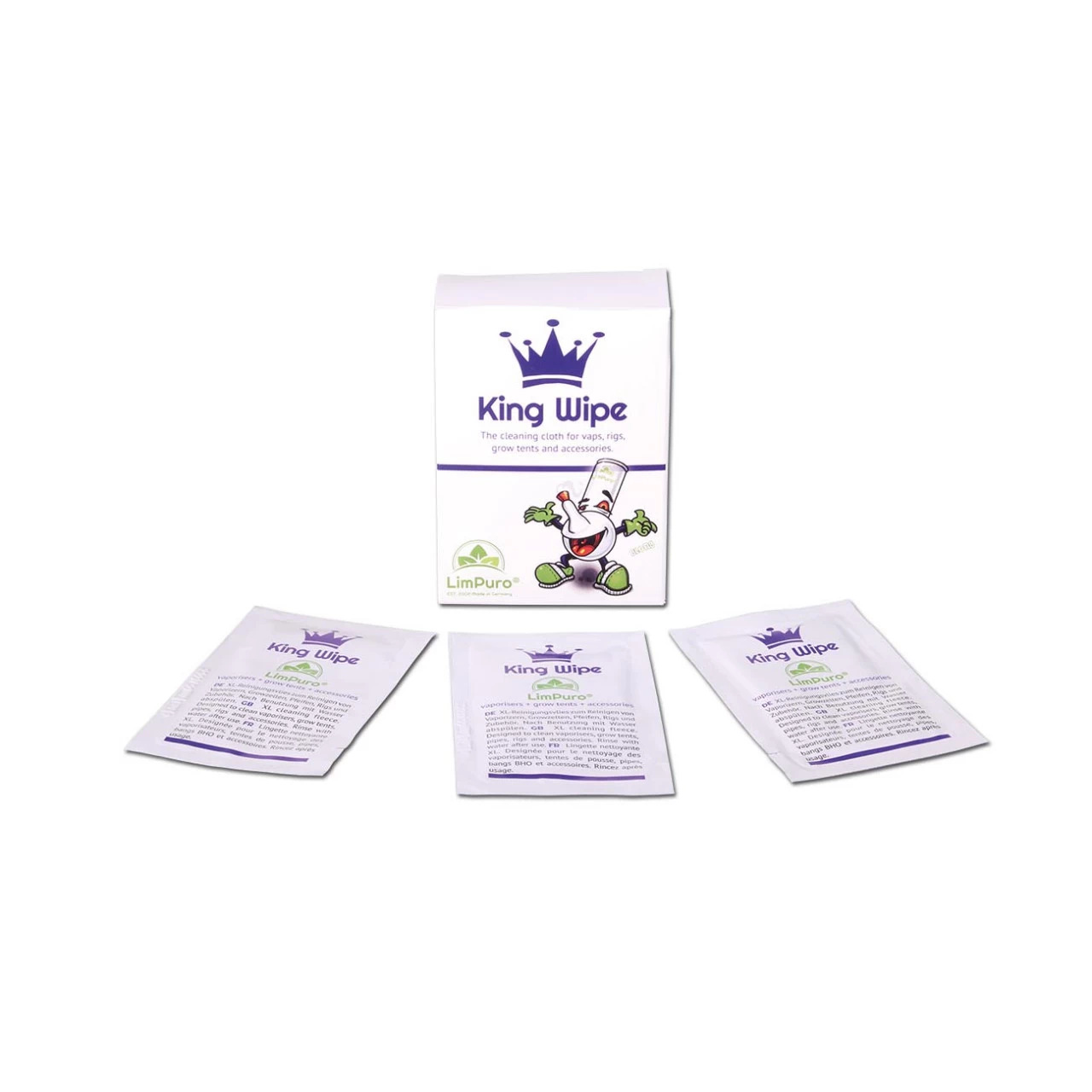 LimPuro ‘Kingwipes’ Cleaning Cloth is for the removal of resins and tars of head shop accessories e.g. dabbing tools. The moistened fleece has a LimPuro bio cleaner formulation.