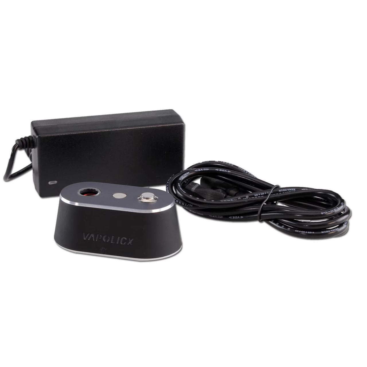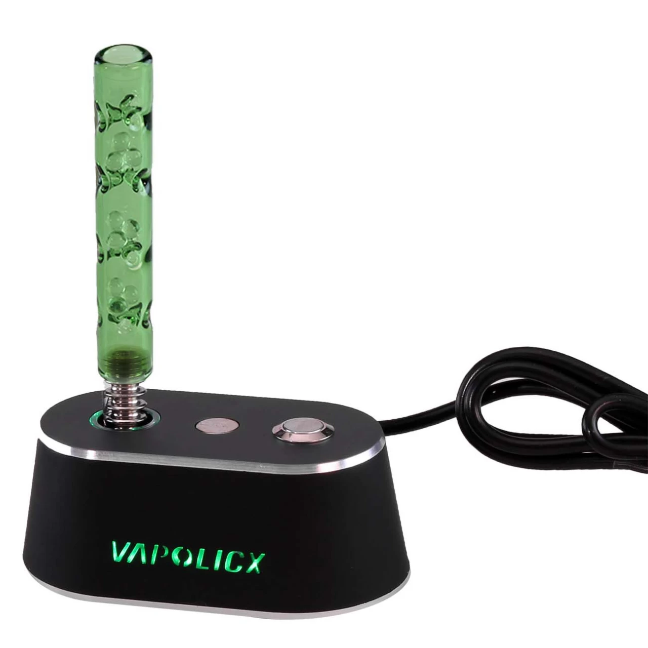 After 15 seconds the heating chamber switches off automatically. In the middle of the device there is a magnetic holder on which you can safely park the ‘VAPOLICX’ hand vaporizers from the 2nd generation on. An AC/DC adapter is naturally included in the scope of delivery. By the way, when the device is switched on, the ‘VAPOLICX’ logo glows neon green, which makes the whole thing look very stylish.