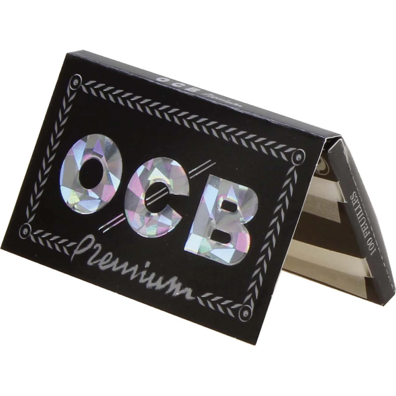 OCB Black Premium Cigarette Papers with gumming made of natural gum arabicum and with double pullouts. With hologram on every booklet. A display box contains 25booklets a 100papers.