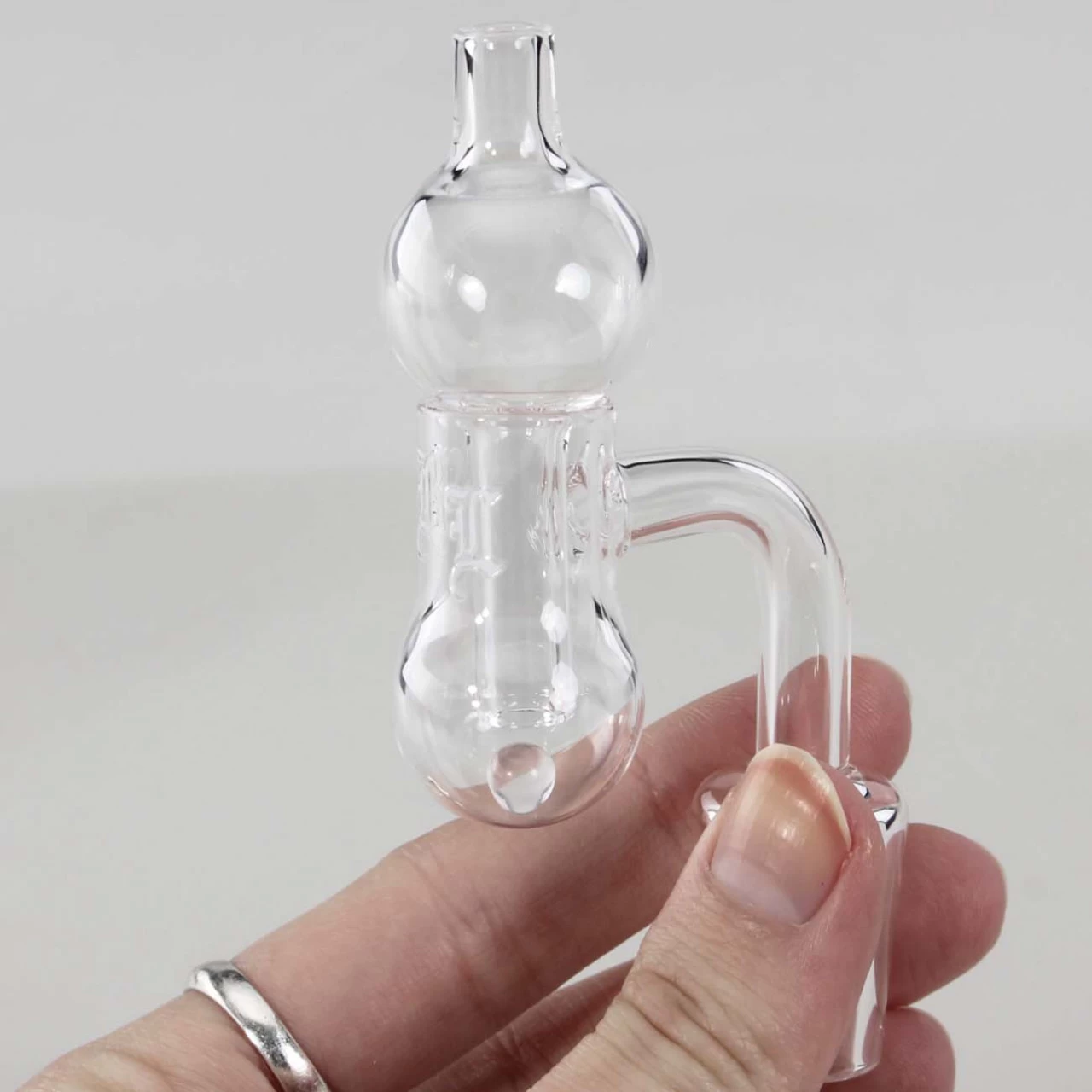 For an additional good mixing, use the glass ball in the banger. Get it to spin with the aid of the carb cap while inhaling. This is not only a nice visual effect. The so-called terp pearls also ensure heat retention and dispersion. They increase the surface area and improve the distribution of heat inside the banger so that more oil or wax can evaporate – for more taste and stronger hits!